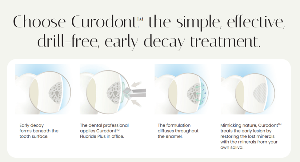 CURODONT™ REPAIR FLUORIDE PLUS, by vVARDIS, is an innovative, painless, drill-free solution for treating early tooth decay and preventing cavities from forming.