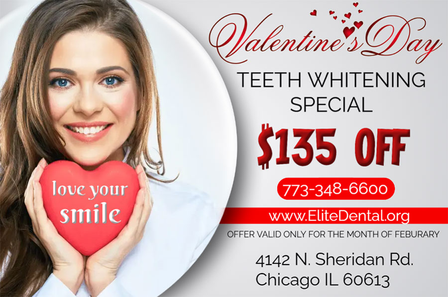 Fall in love with your smile this Valentine's Day! At Elite Dental, teeth whitening is $135 off during the entire month of February. Give us a call to schedule your appointment today!